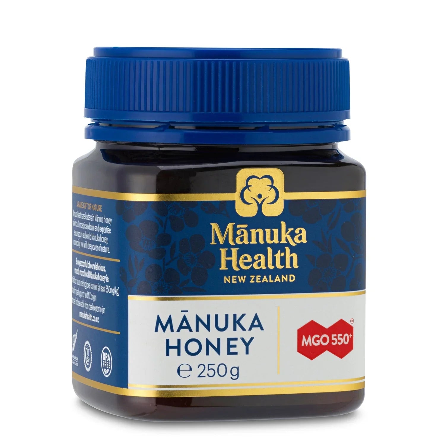 Πρόκειται για ένα premium New Zealand MGO 550+ μέλι manuka, πιστοποιημένο ότι περιέχει φυσική περιεκτικότητα σε μεθυλογλυοξάλη τουλάχιστον 550 mg / kg — ένα επιστημονικά αποδεδειγμένο βασικό φυσικό συστατικό του μελιού manuka.