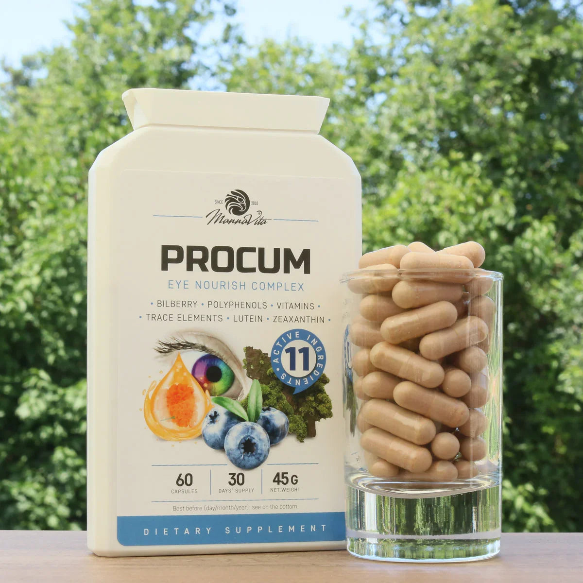 Με τη βοήθεια του PrOcum, μπορείτε να λαμβάνετε καθημερινά υψηλή δόση από ενεργά συστατικά που ενισχύουν και υποστηρίζουν την όραση.